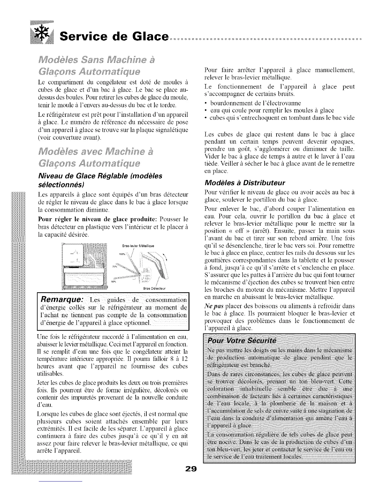 de rdgler le niveau de glace dans le bac/_ glace lorsque