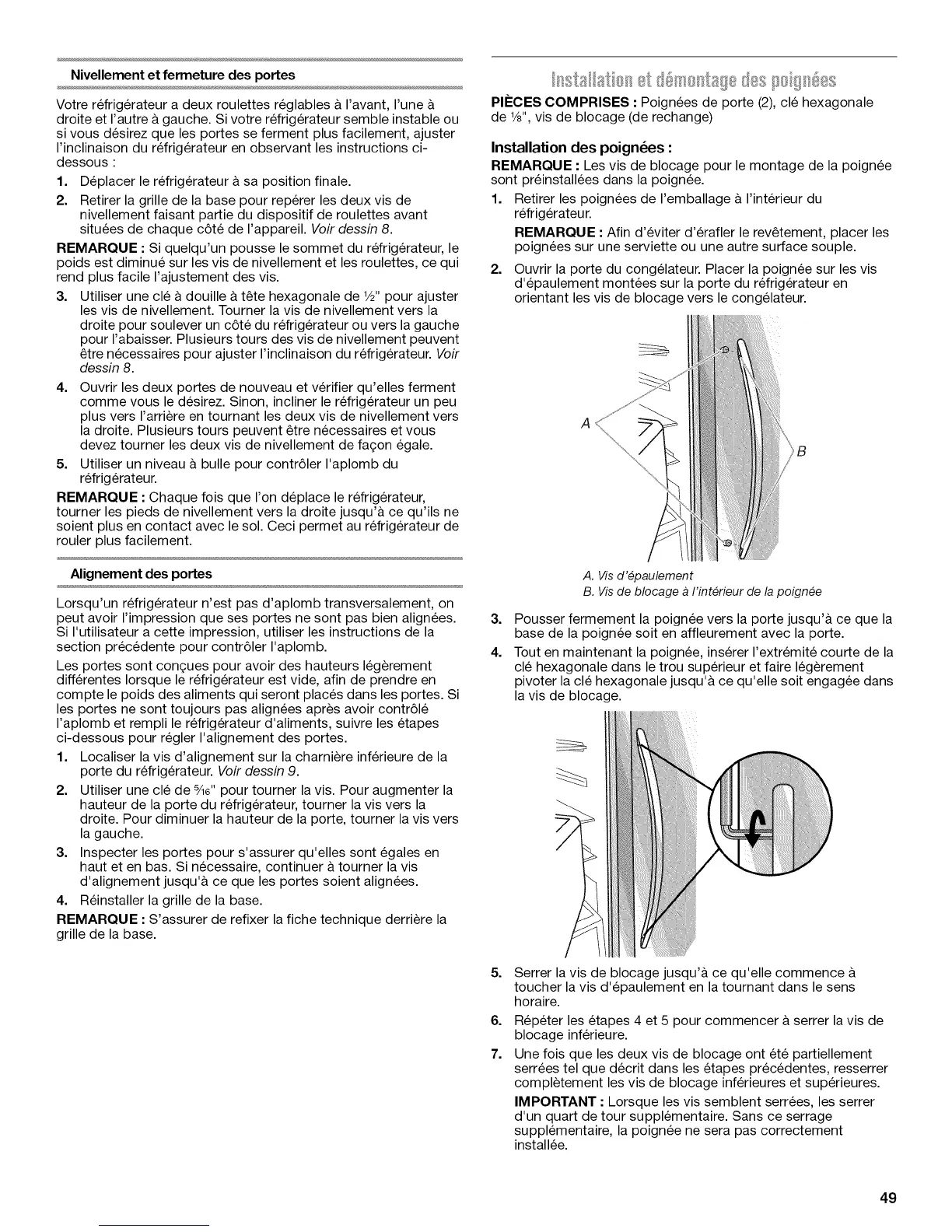 _tre necessaires pour ajuster I'inclinaison du refrig6rateur. Voir