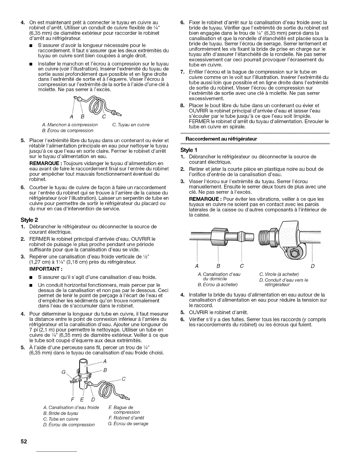 cuivre de 1/4"(6,35 mm) de diametre exterieur. Veiller ace que