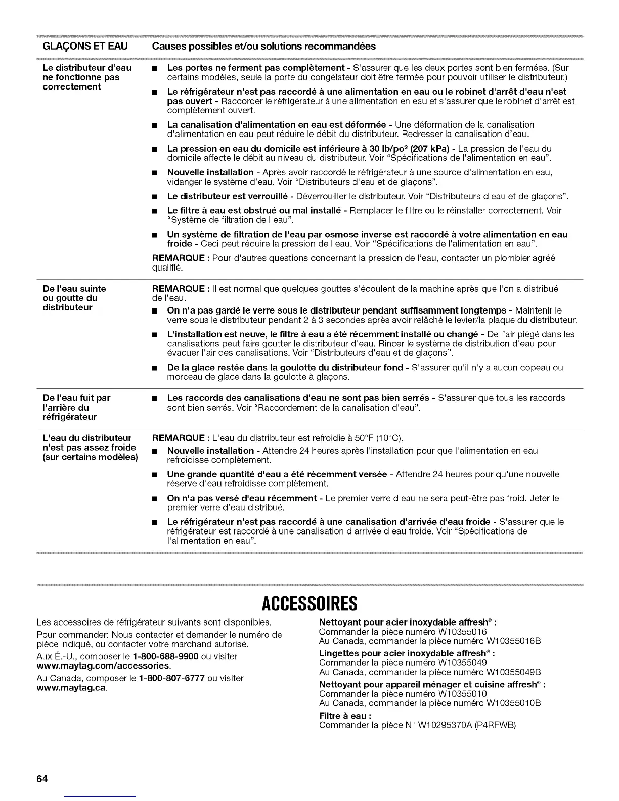 Au Canada, commander la piece numero W10355010B