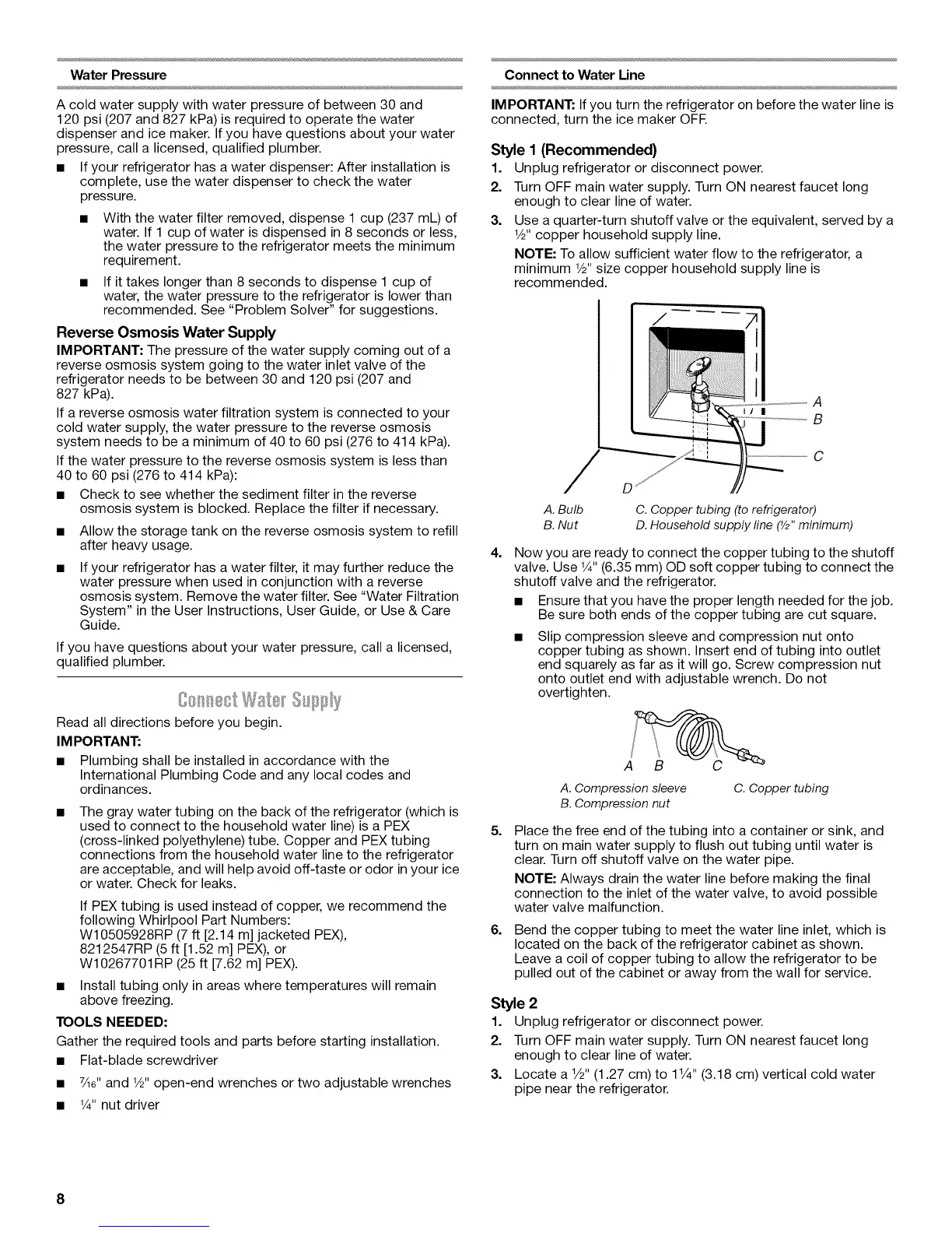NOTE: To allow sufficient water flow to the refrigerator, a