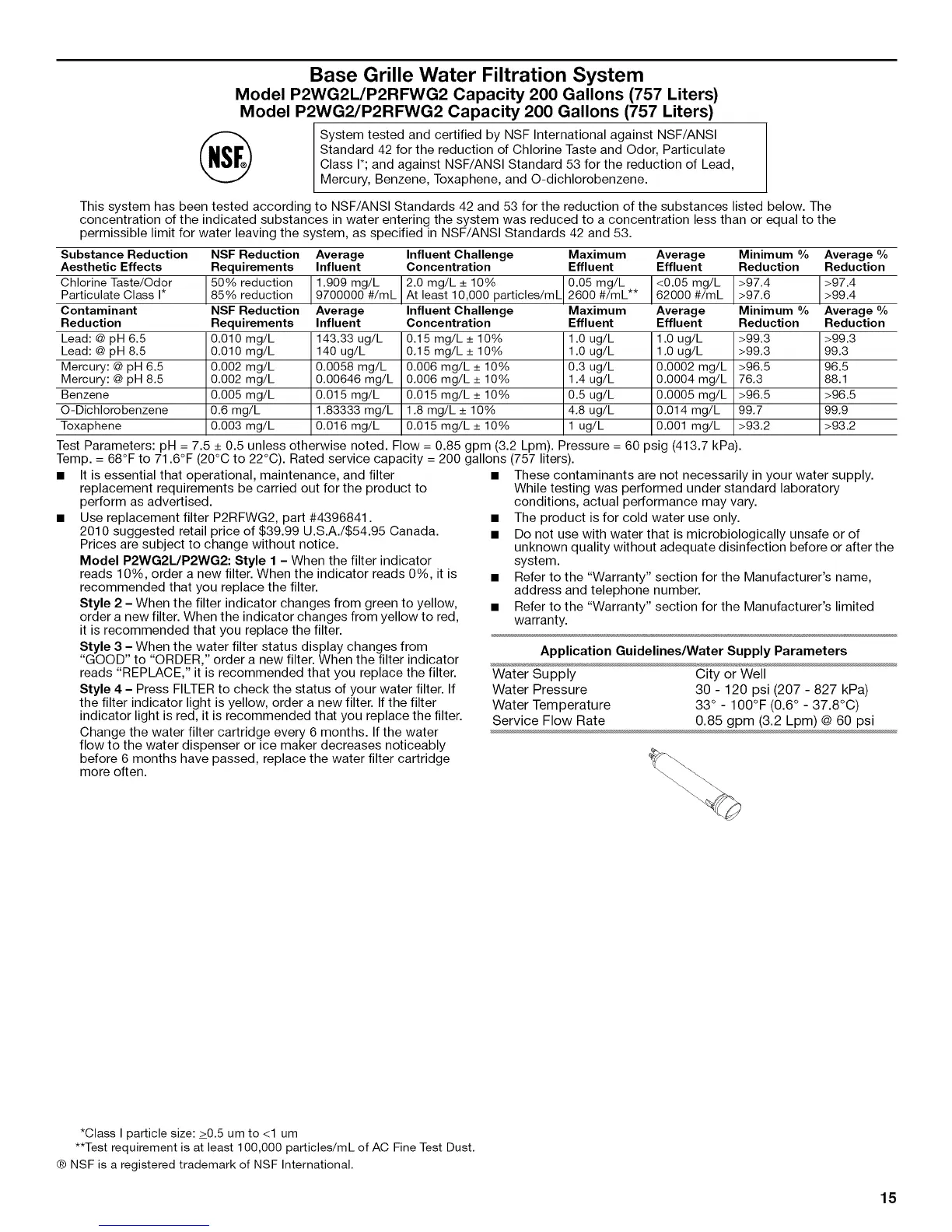 Model P2WG2L/P2WG2: Style 1 - When the filter indicator