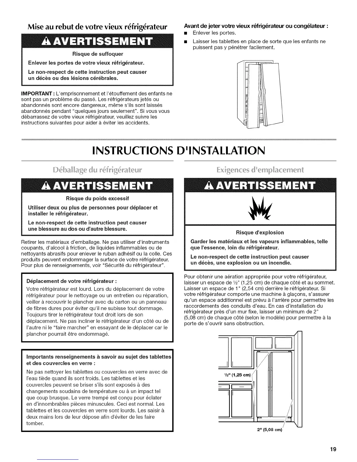 Laisser un espace de 1" (2,54 cm) derriere le refrigerateur. Si