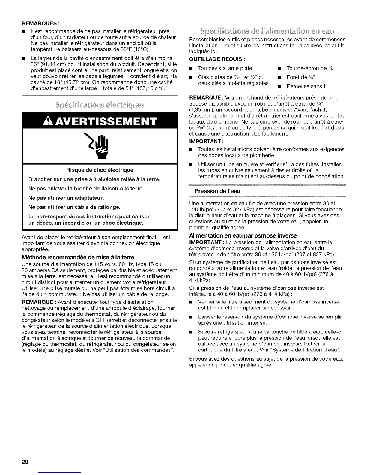refrigerateur dolt etre entre 30 et 120 Ib/po 2(207 et 827 kPa).