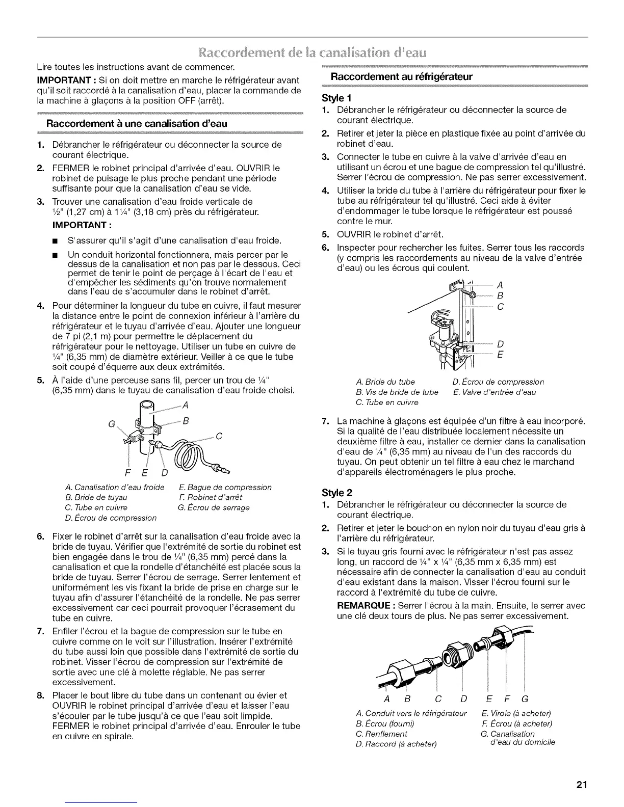 refrigerateur et le tuyau d'arrivee d'eau. Ajouter une Iongueur