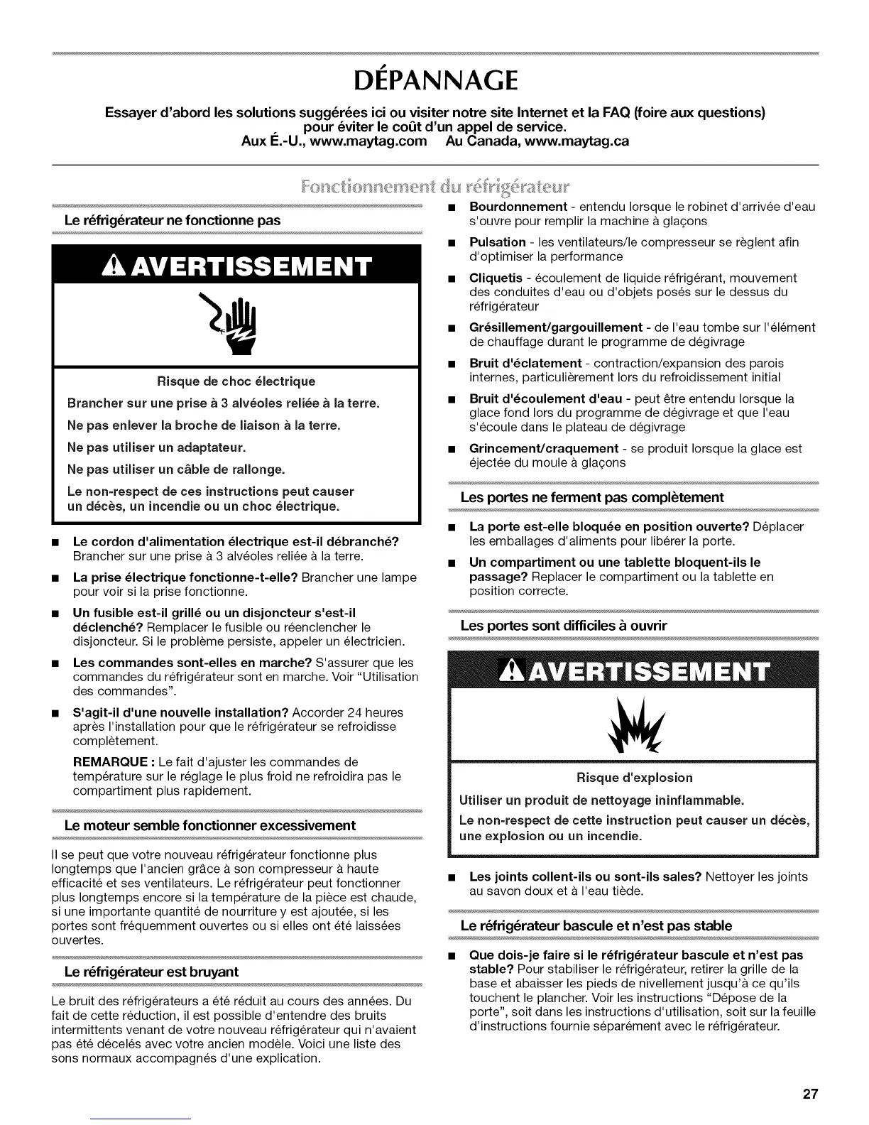 Aux I_.-U., www.maytag.com Au Canada, www.maytag.ca