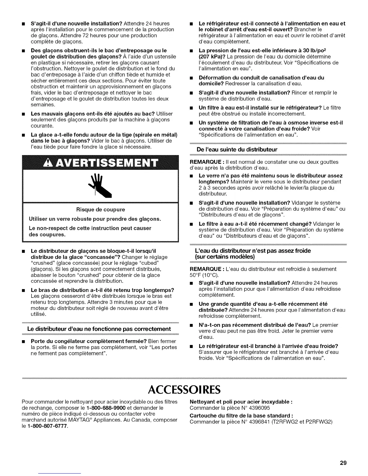 d'eau" ou "Distributeurs d'eau et de gla£ons".