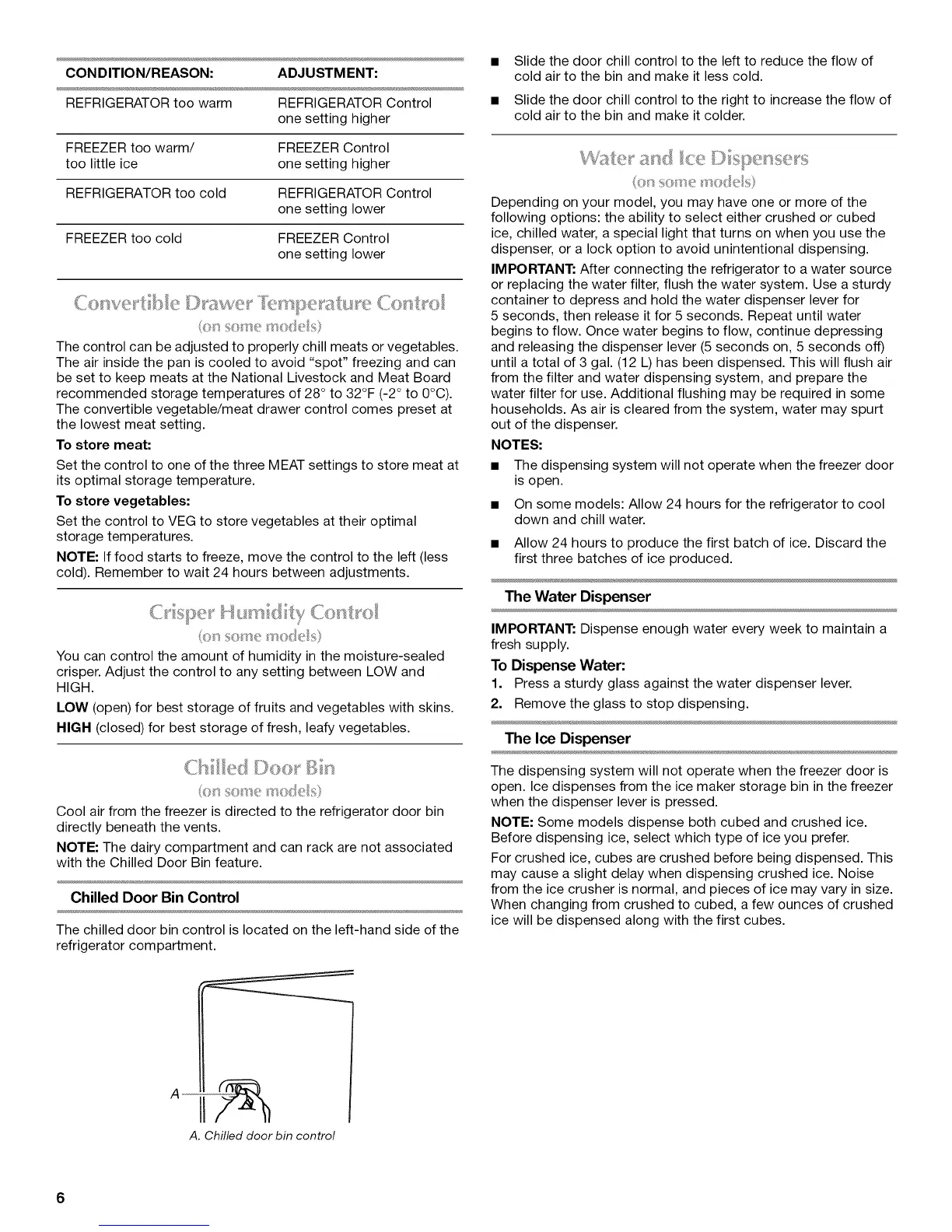 open. Ice dispenses from the ice maker storage bin in the freezer