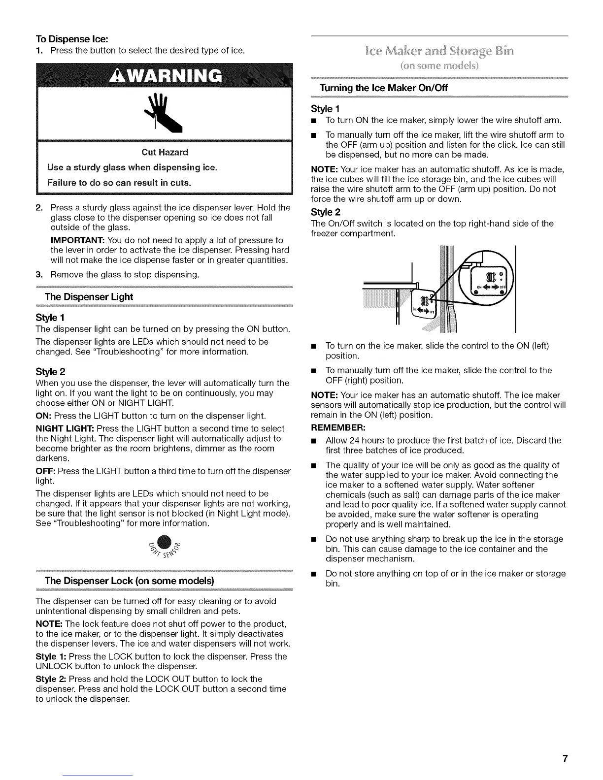 the OFF (arm up) position and listen for the click. Ice can still