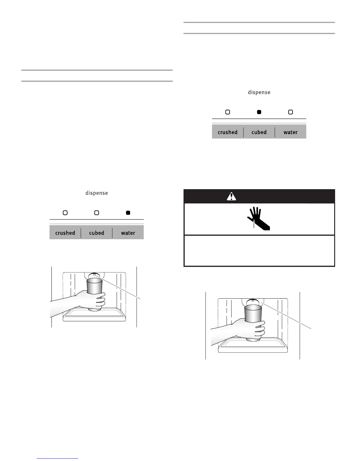 For crushed ice, cubes are crushed before being dispensed. This
