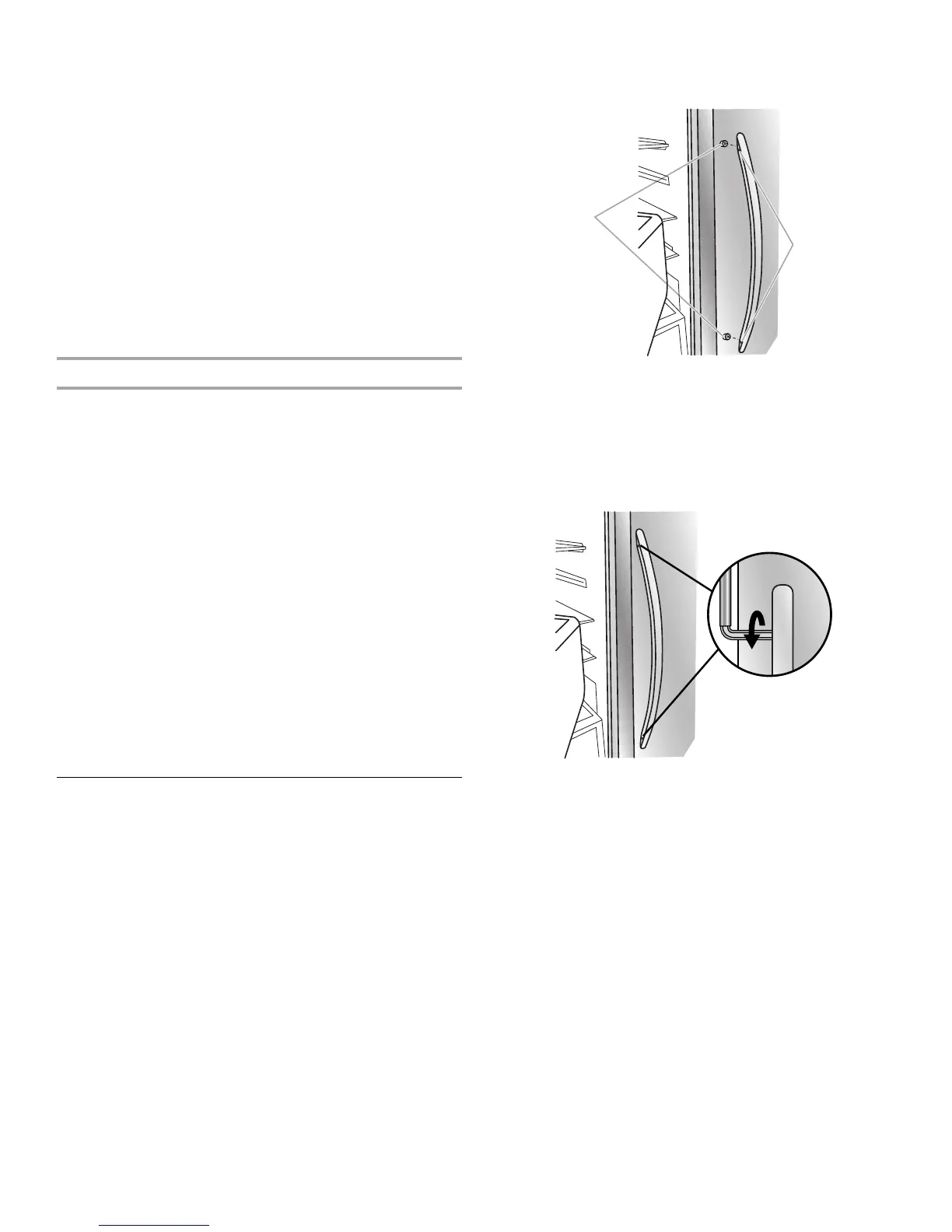 2. Ouvrir la porte du congélateur. Placer la poignée sur les vis