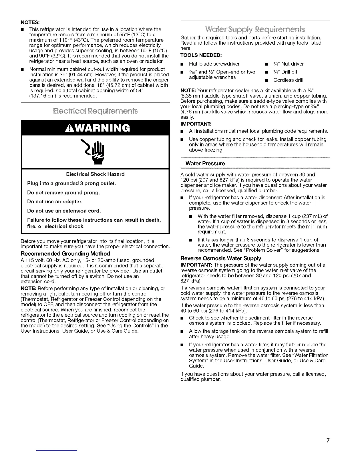 dispenser and ice maker. If you have questions about your water