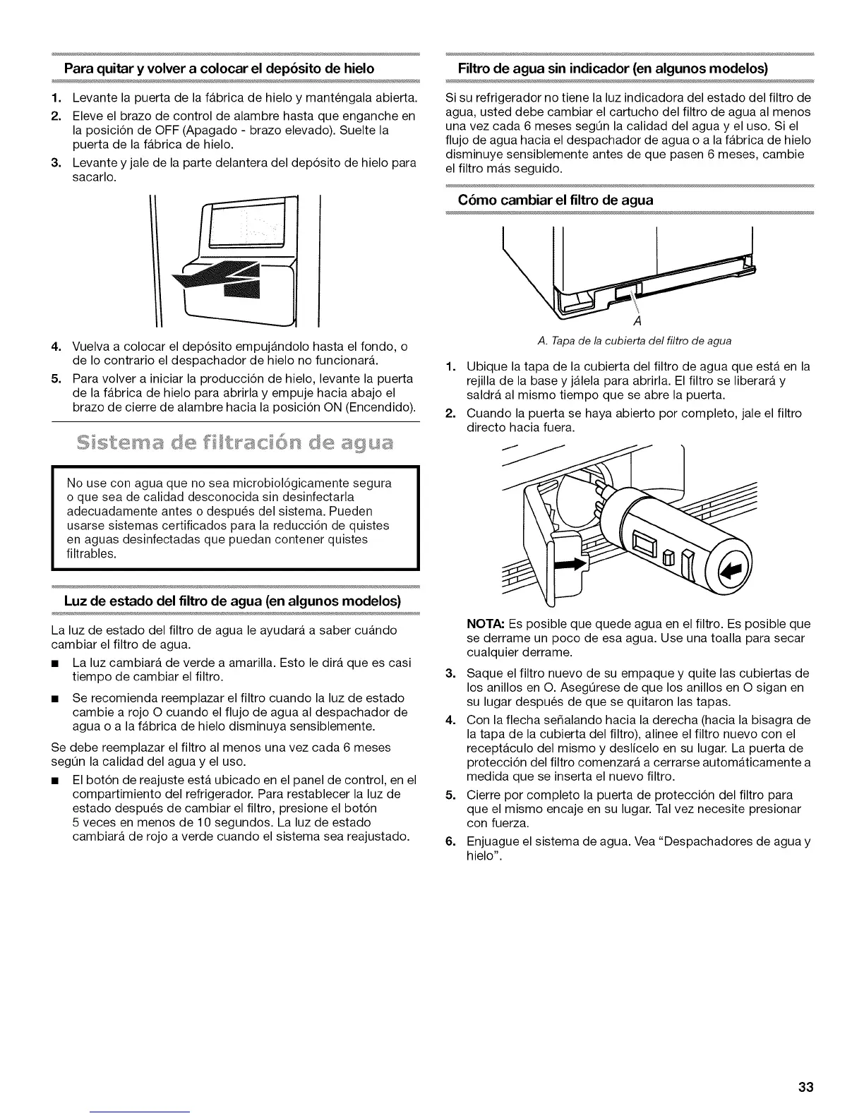 agua, usted debe cambiar el cartucho del filtro de agua al menos
