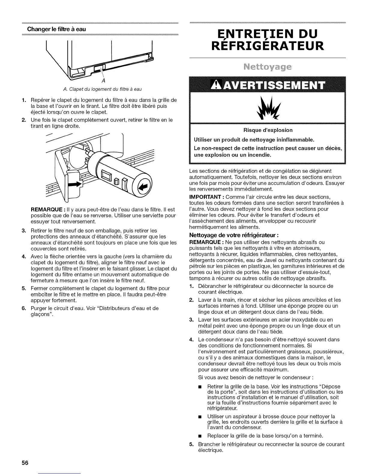 REMARQUE : II y aura peut-etre de I'eau dans le filtre. II est