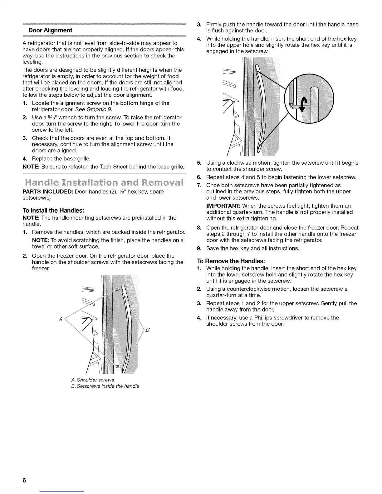 NOTE: The handle mounting setscrews are preinstalled in the