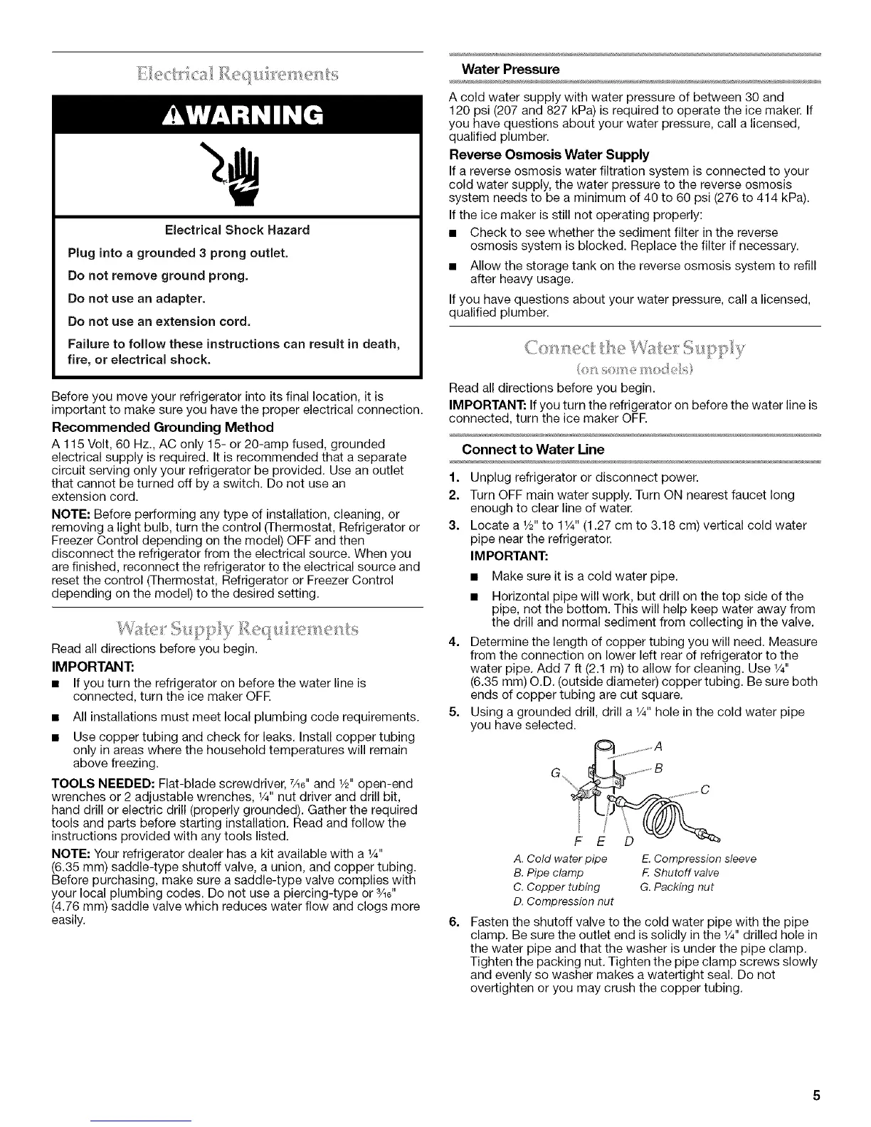 (6.35 mm) saddle-type shutoff valve, a union, and copper tubing.