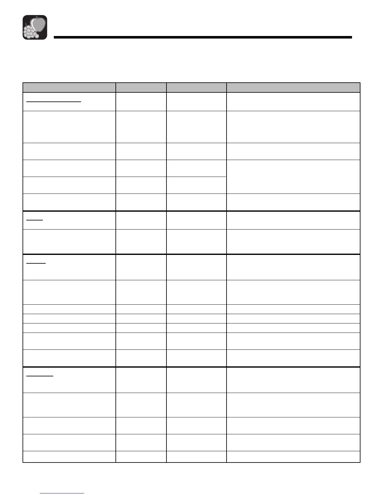 Tableau de conservation des aliments