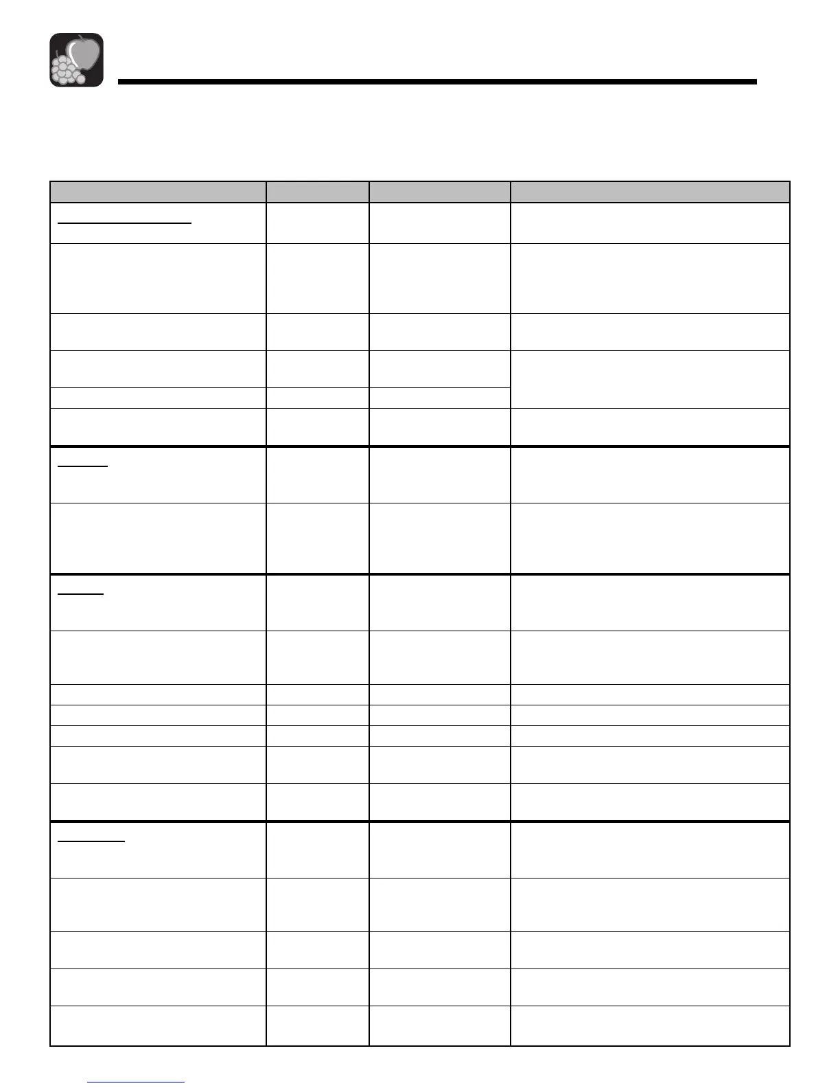 Tabla de Conservación de los Alimentos