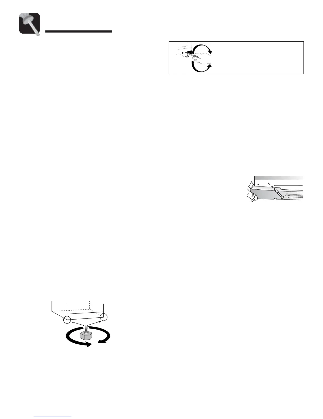 • Ajuster les vis d'aplomb/de calage sous chacun des coins