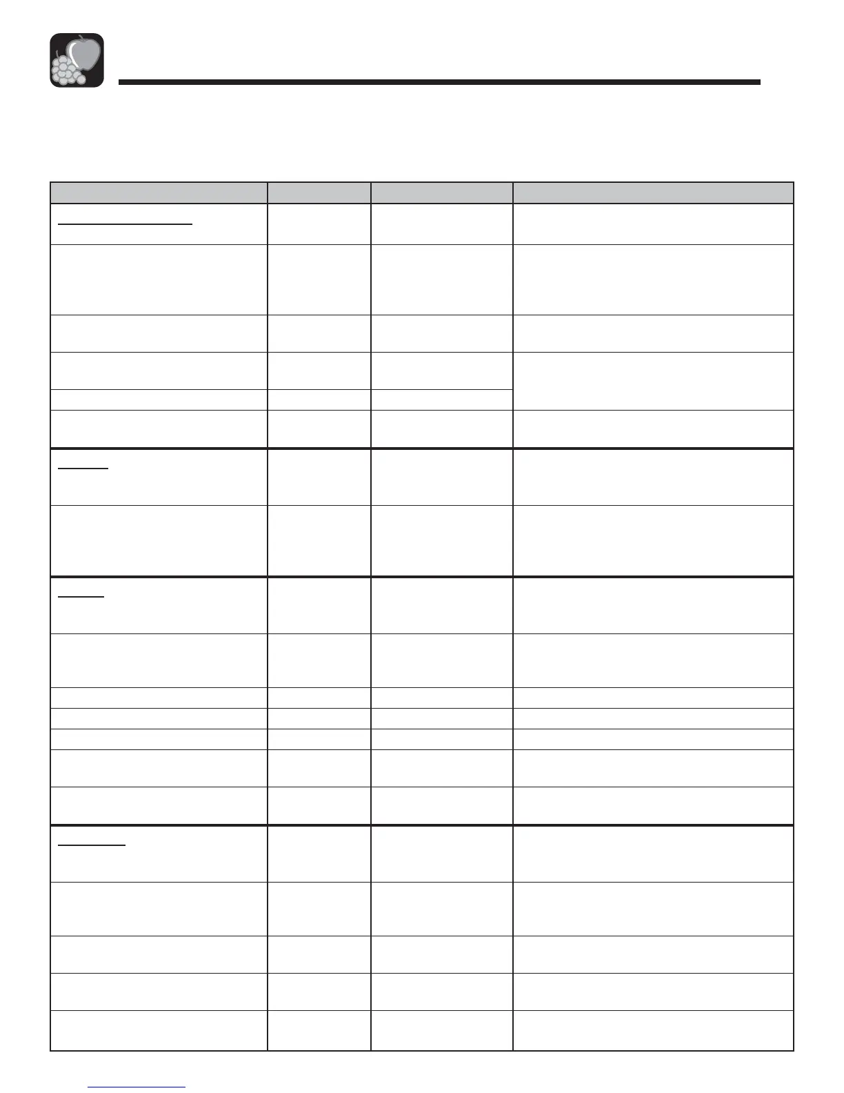 Tabla de Conservación de los Alimentos