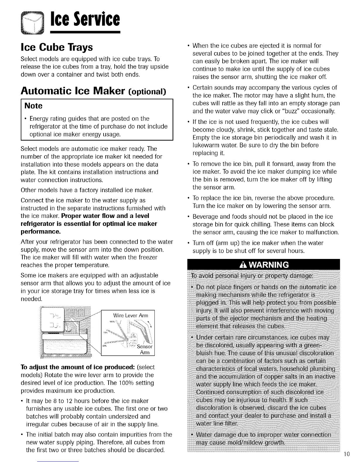the sensor arm, causing the ice maker to malfunction.