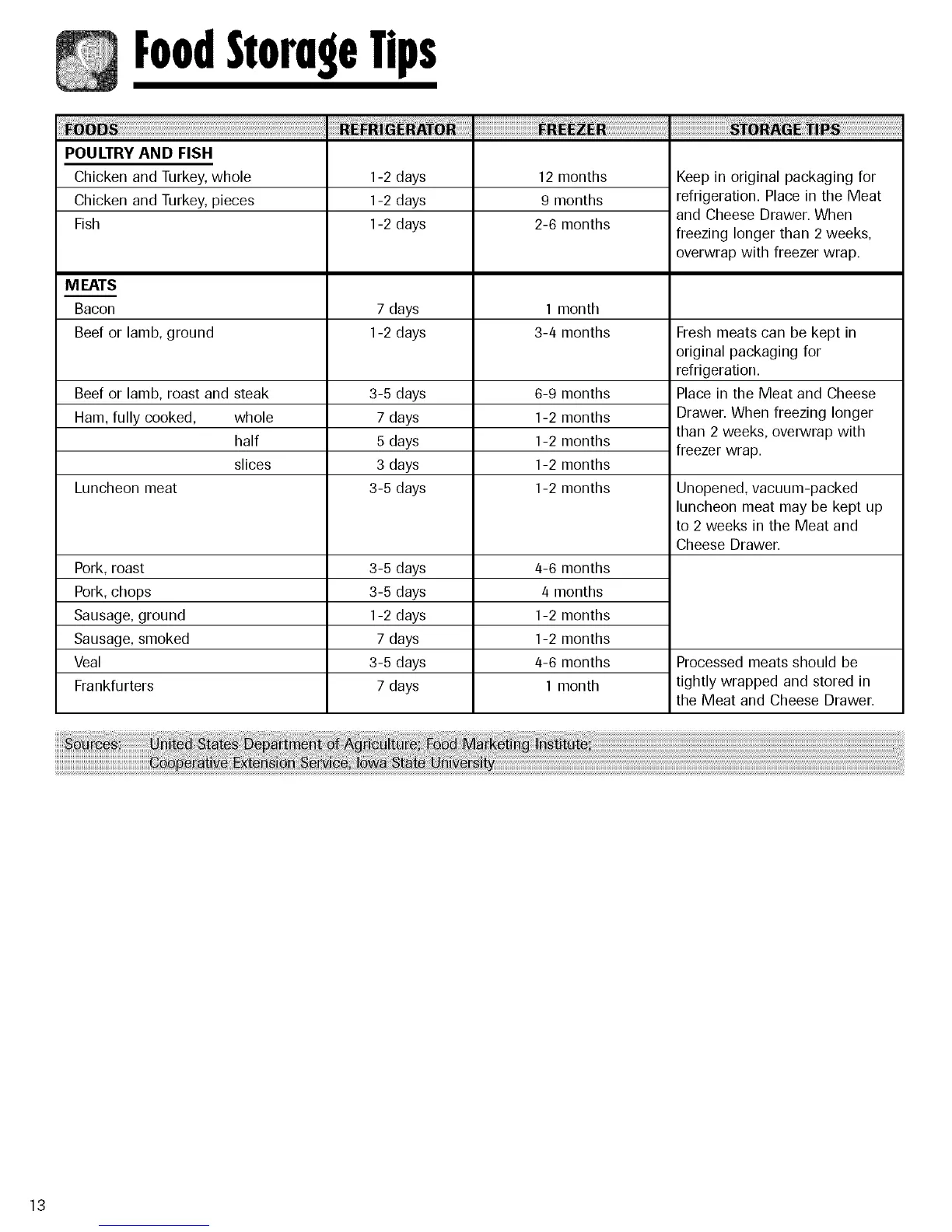 to 2 weeks in the Meat and