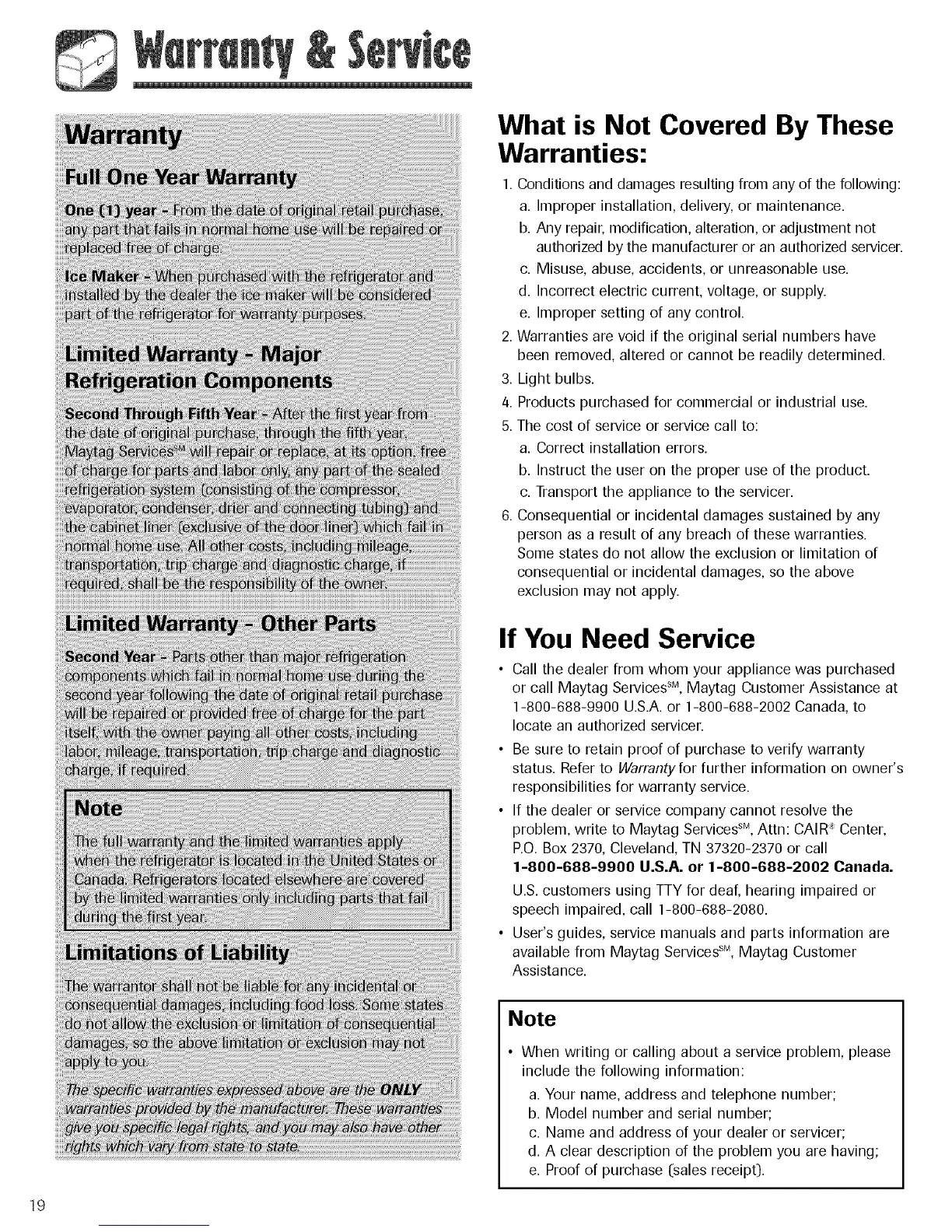 or call Maytag ServicessM,Maytag Customer Assistance at