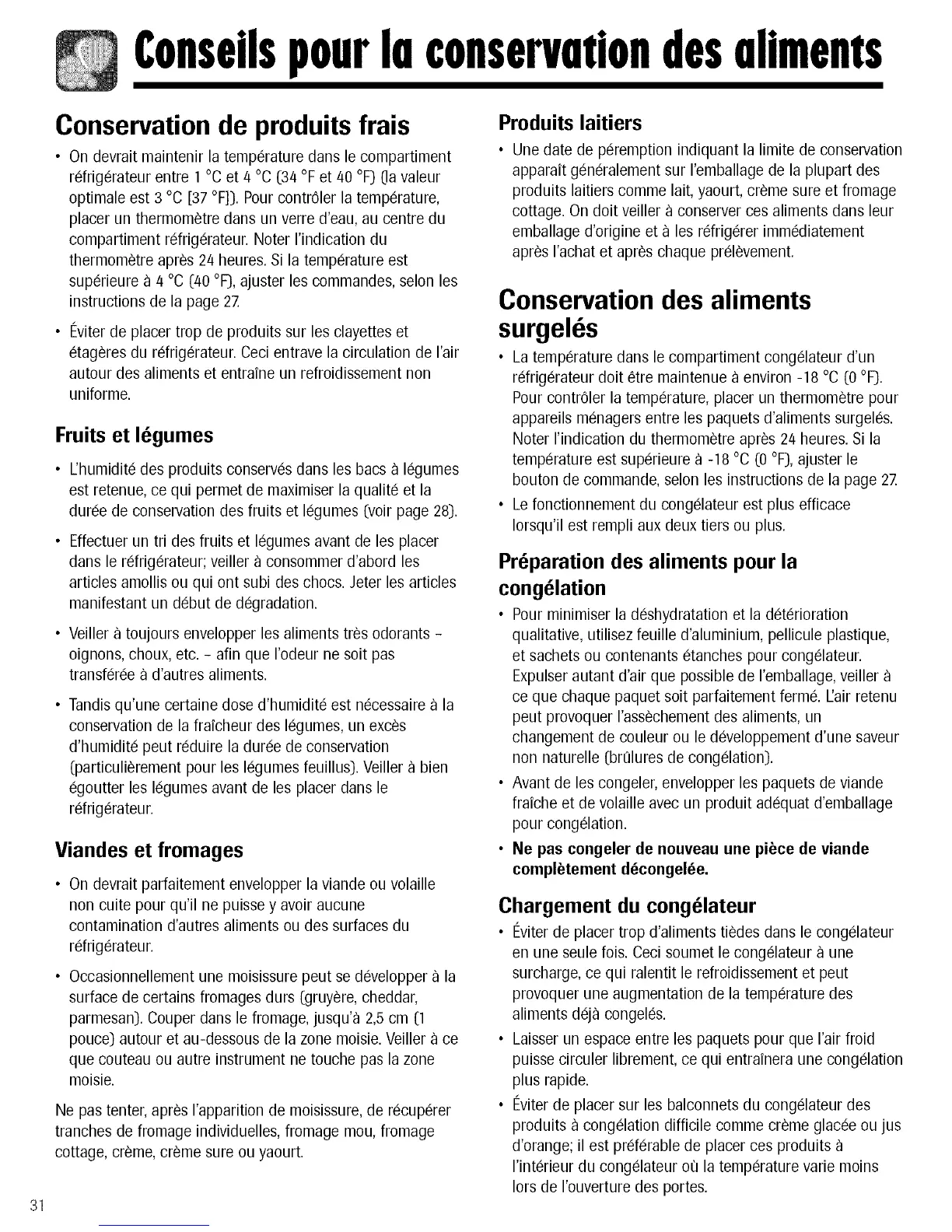 rdrigerateur doit etre maintenue a environ -18 °C (0 oF).
