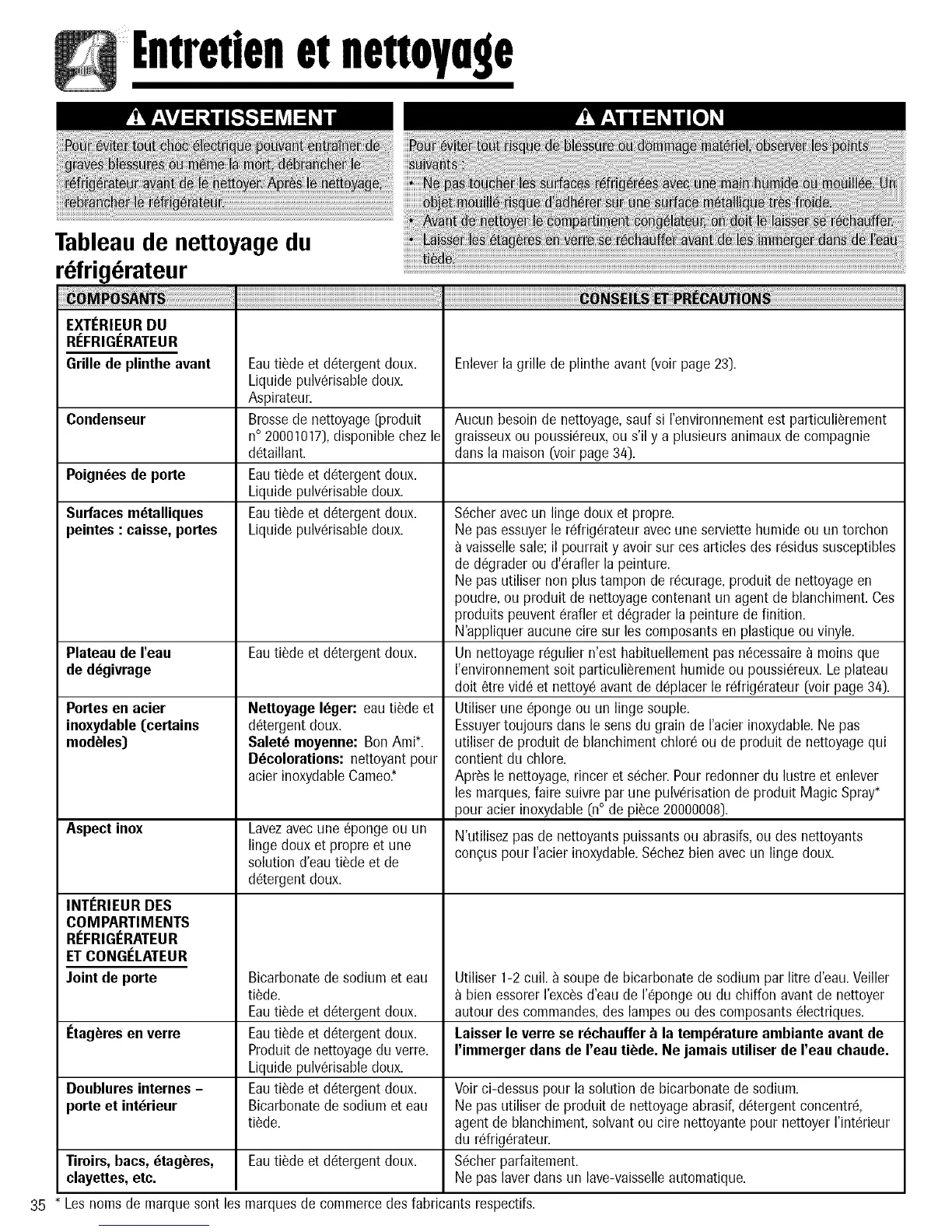 doit 6trevid6et nettoy6avantde d6placerle r6frig6rateur{voirpage 34).