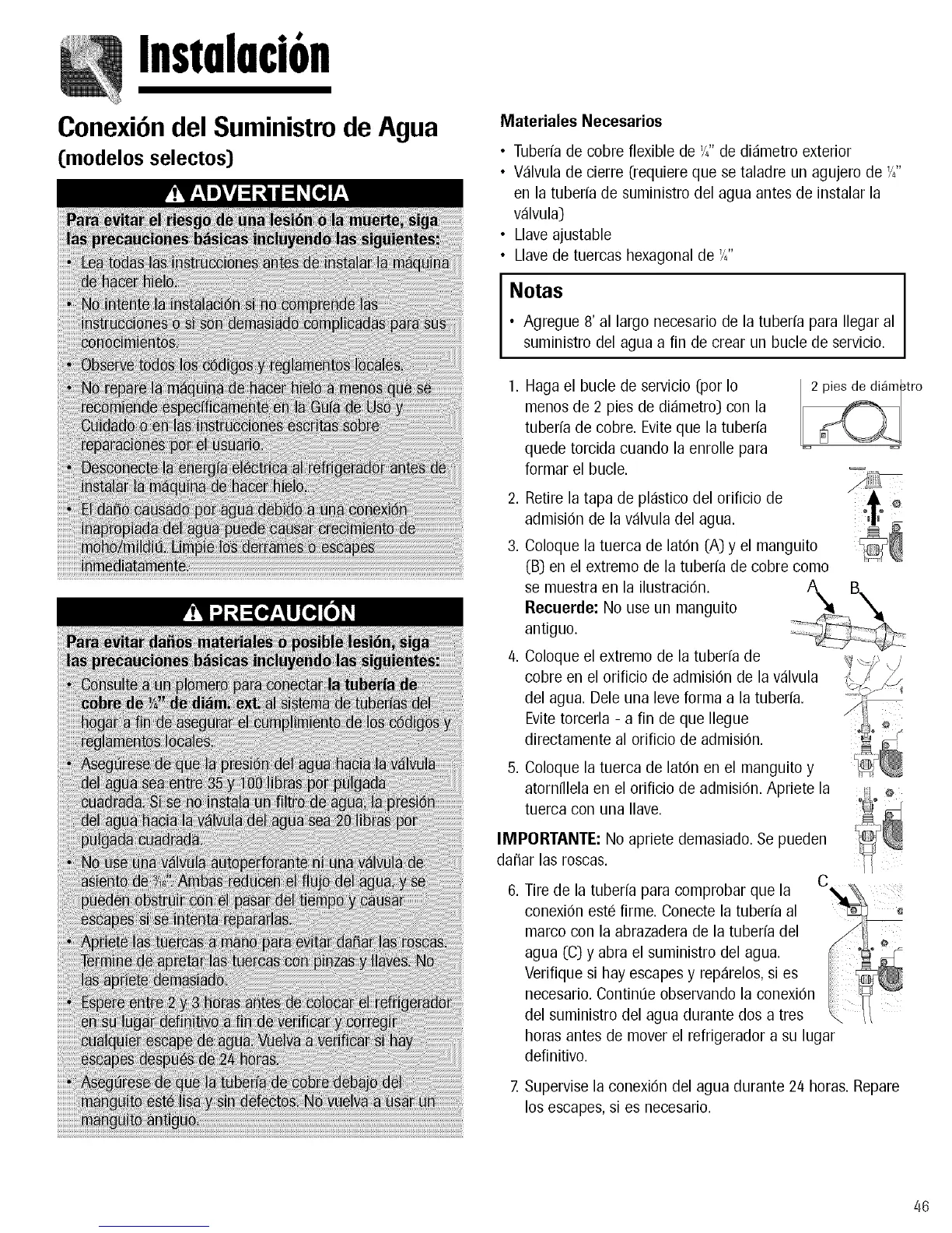 7.Supervise la conexi6n del agua durante 24 horas. Repare