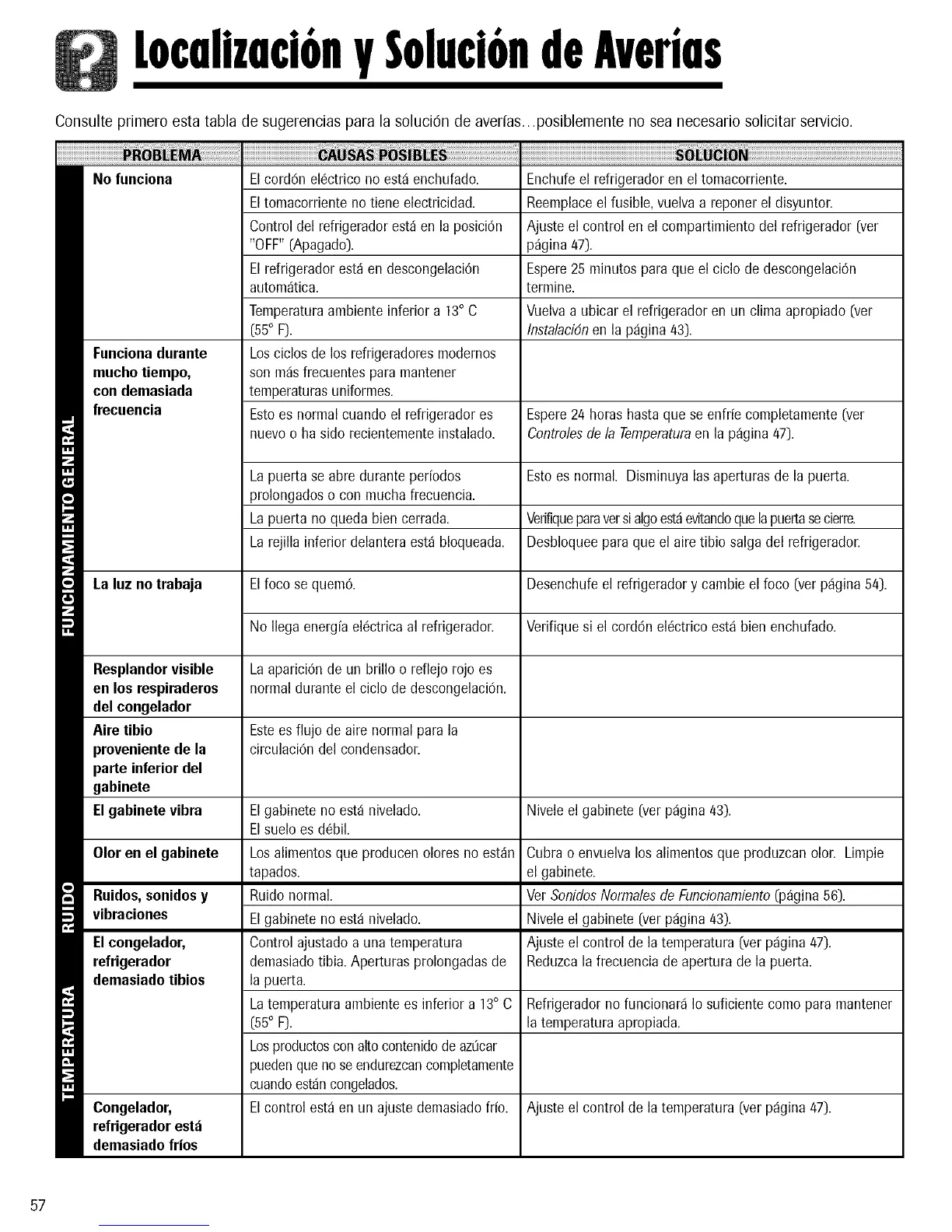 Temperaturaambienteinferior a 13° C Vuelvaa ubicar el refrigeradoren un clima apropiado(ver