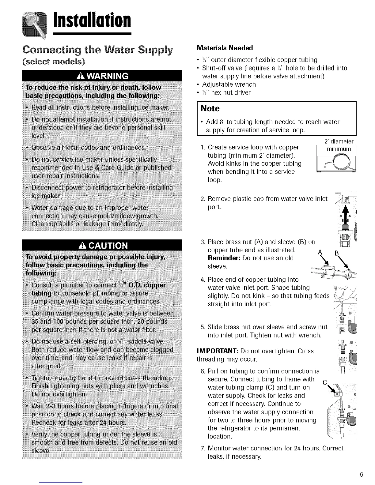 7. Monitor water connection for 24 hours. Correct