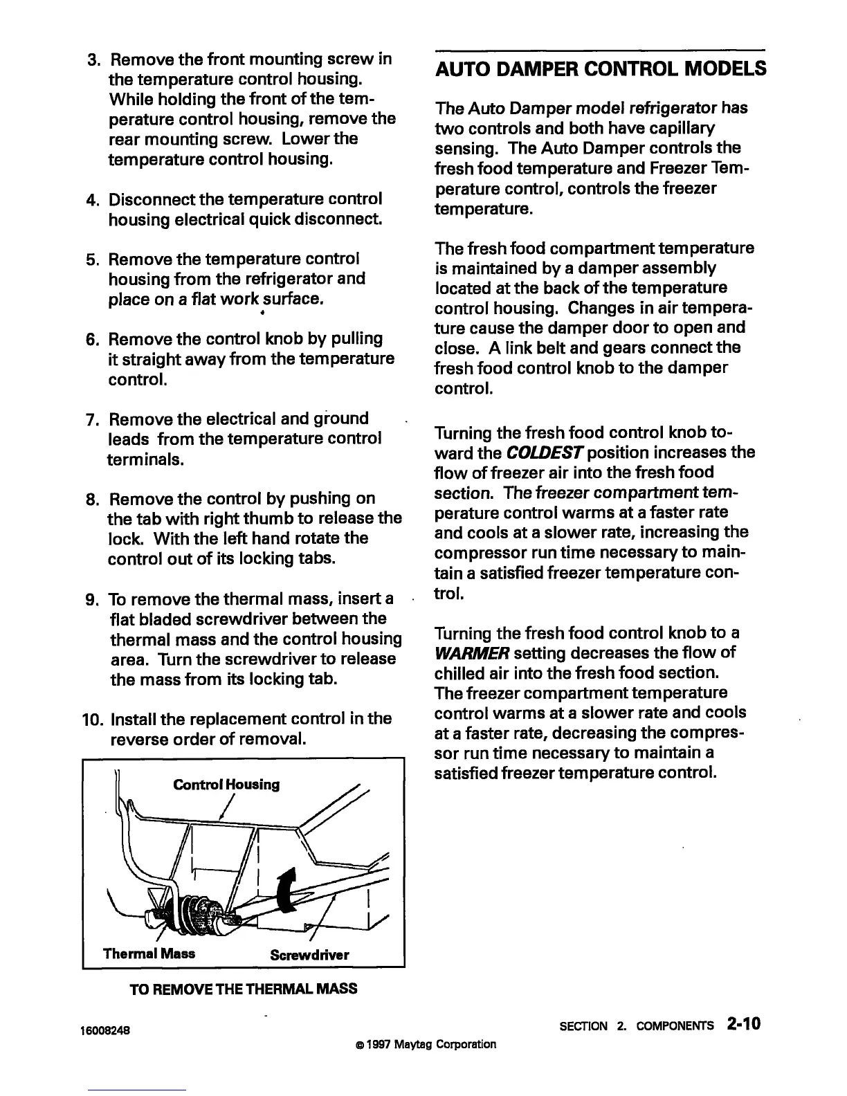 Maytag MTB1954 - Auto Damper Control Models; To Remove the Thermal Mass