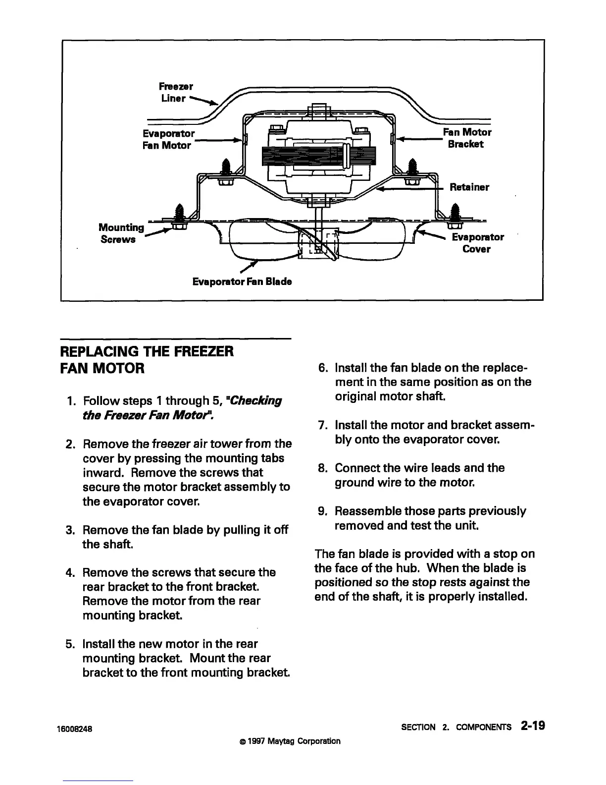 Maytag MTB1954 - Replacing the Freezer Fan Motor