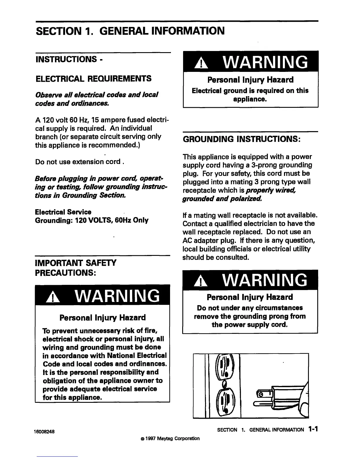 Maytag MTB1954 - General Information; Electrical Requirements; Grounding Instructions; Important Safety Instructions