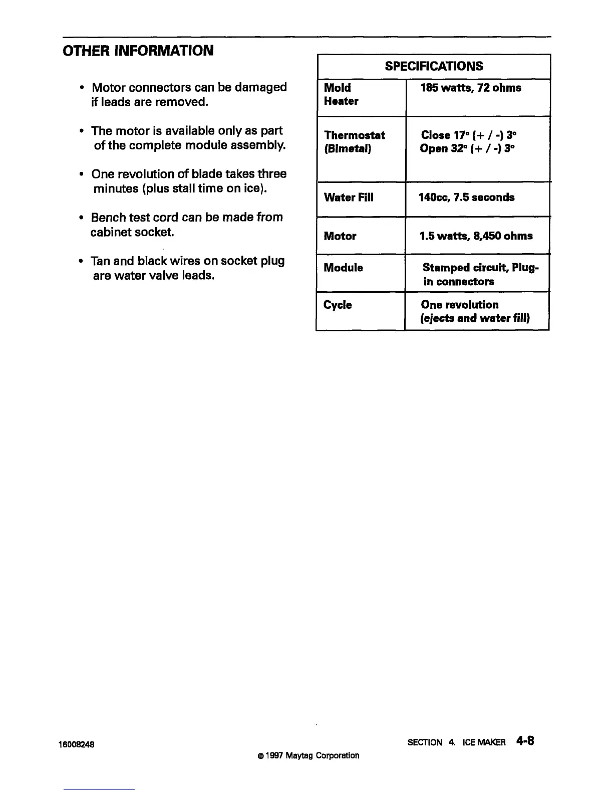 Maytag MTB1954 - Other Information; Specifications