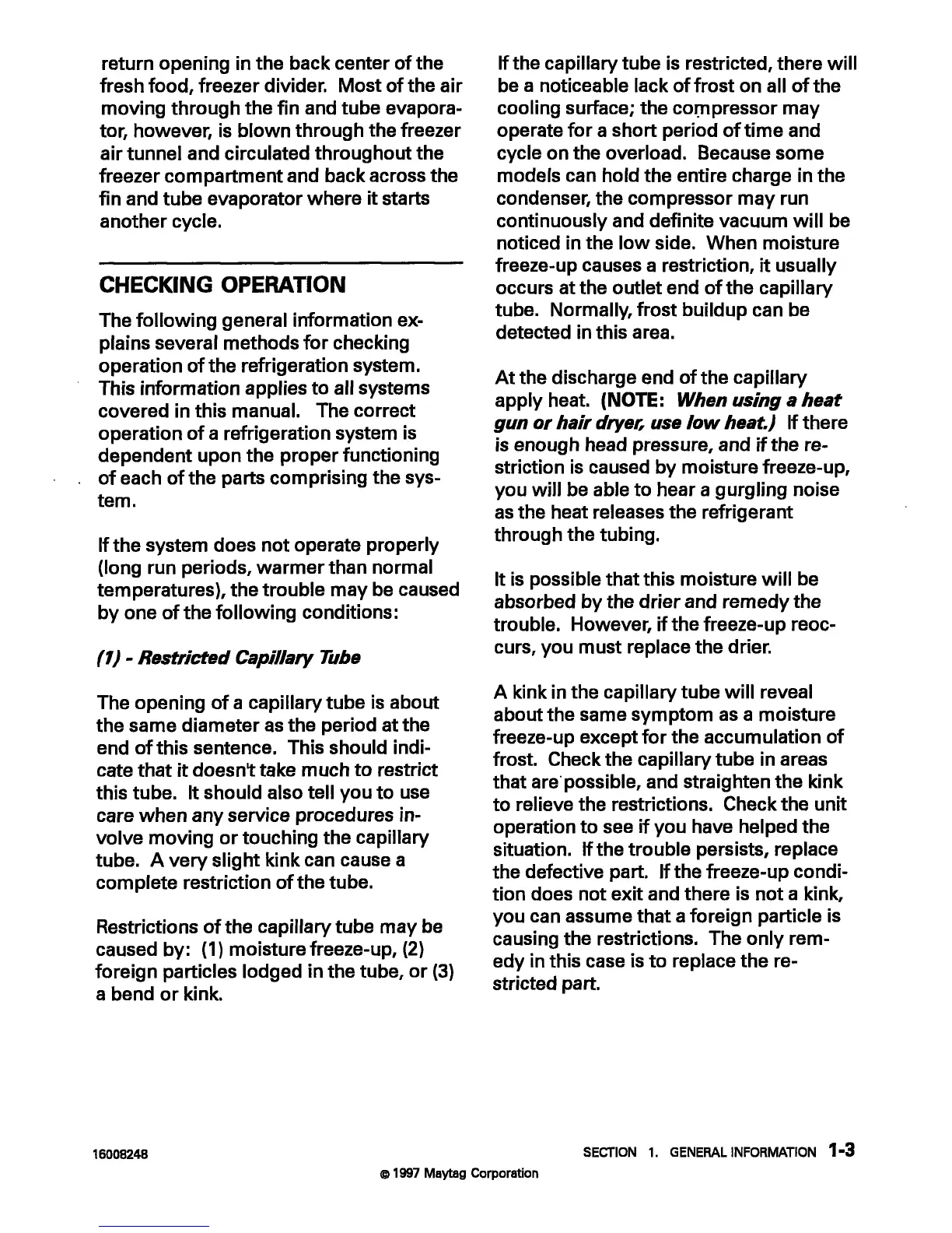 Maytag MTB1954 - Checking Operation; Restricted Capillary Tube