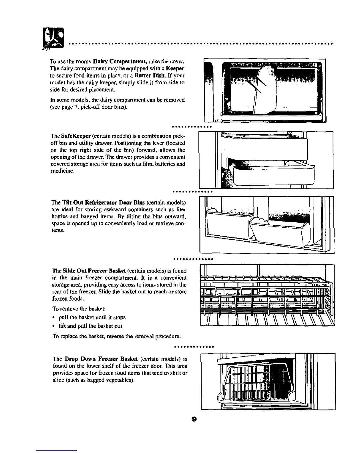 The Slide Out Freezer Basket (certain models) is found