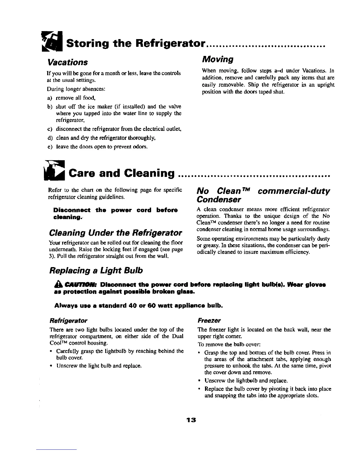 Storing the Refrigerator .....................................