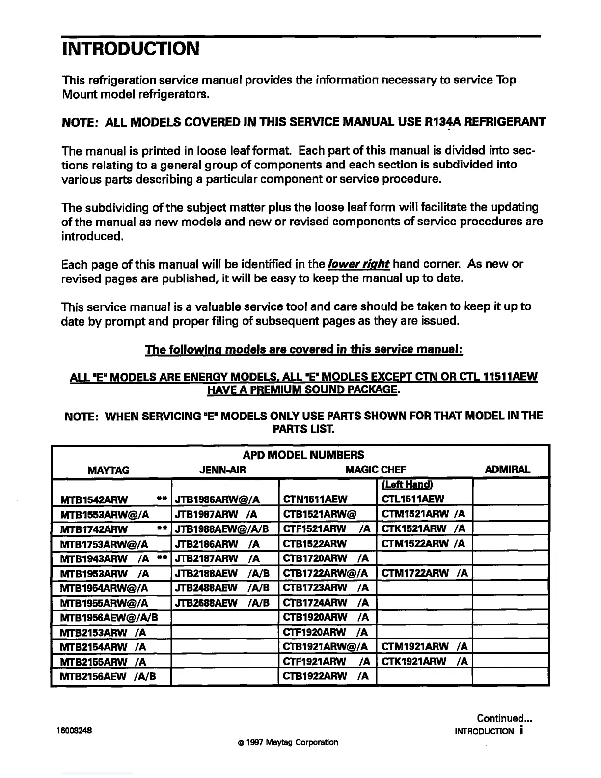 Maytag MTB2456 - System Overview and General Information; Introduction to the Service Manual