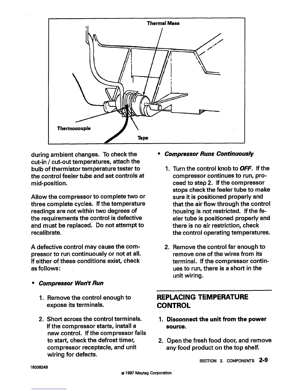 Maytag MTB2456 - Replacing Temperature Control; Compressor Wont Run; Compressor Runs Continuously