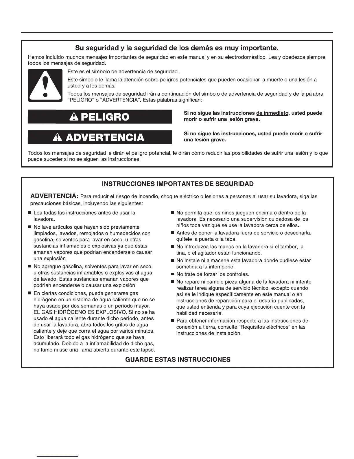 Maytag MVW18CS - Spanish; Seguridad de la Lavadora