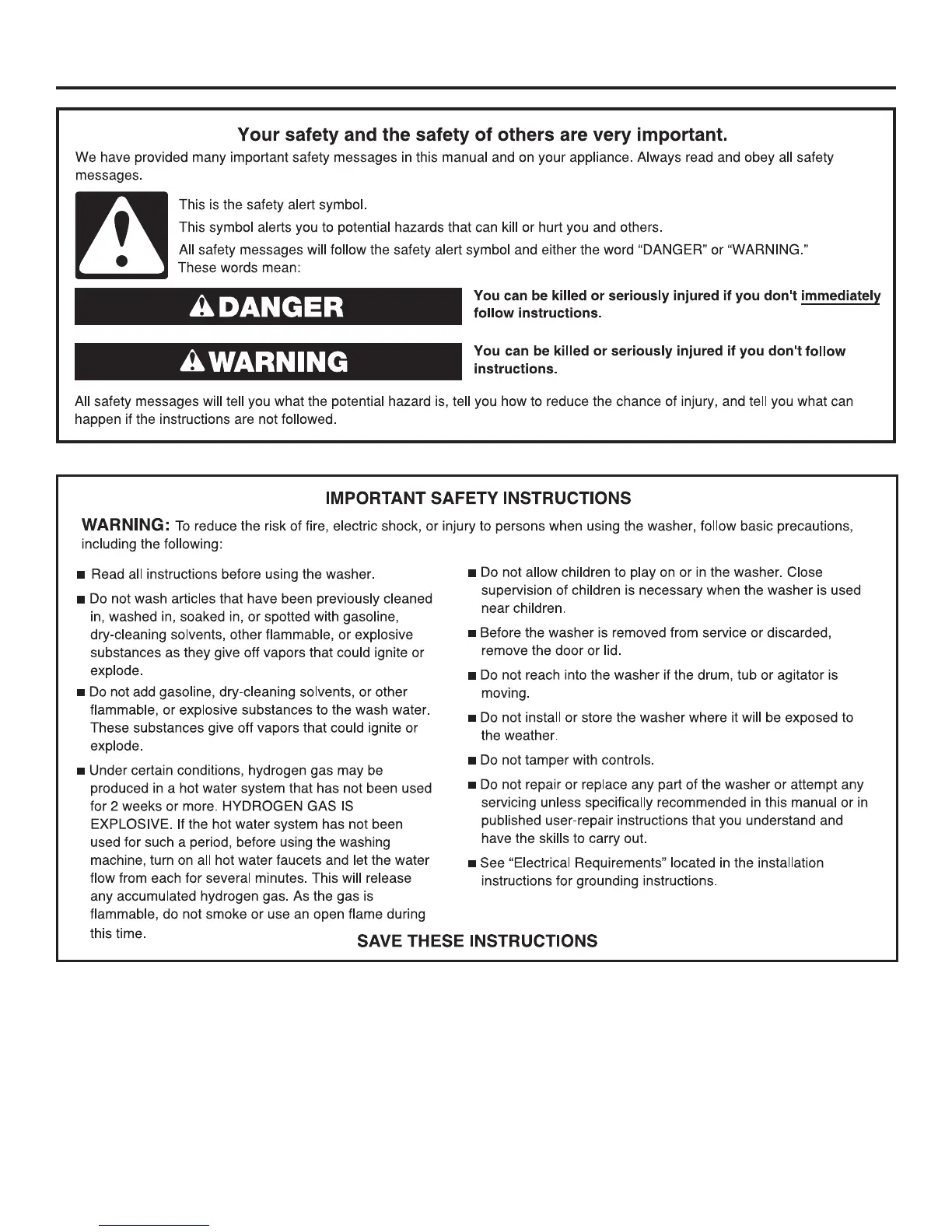 Maytag MVW18PD - Washer Safety; Important Safety Instructions