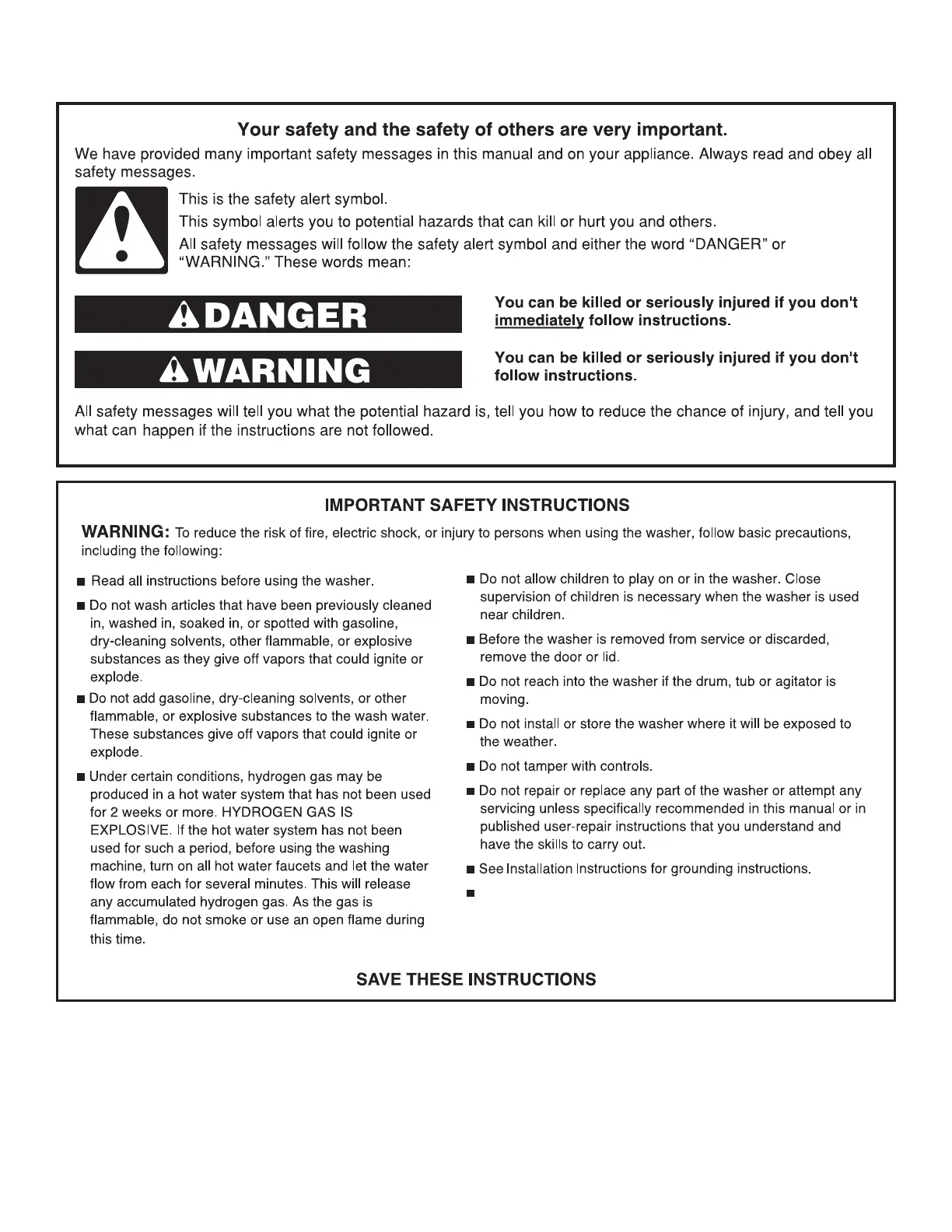 Maytag MVWP575GW - Washer Safety Guidelines; Important Safety Instructions