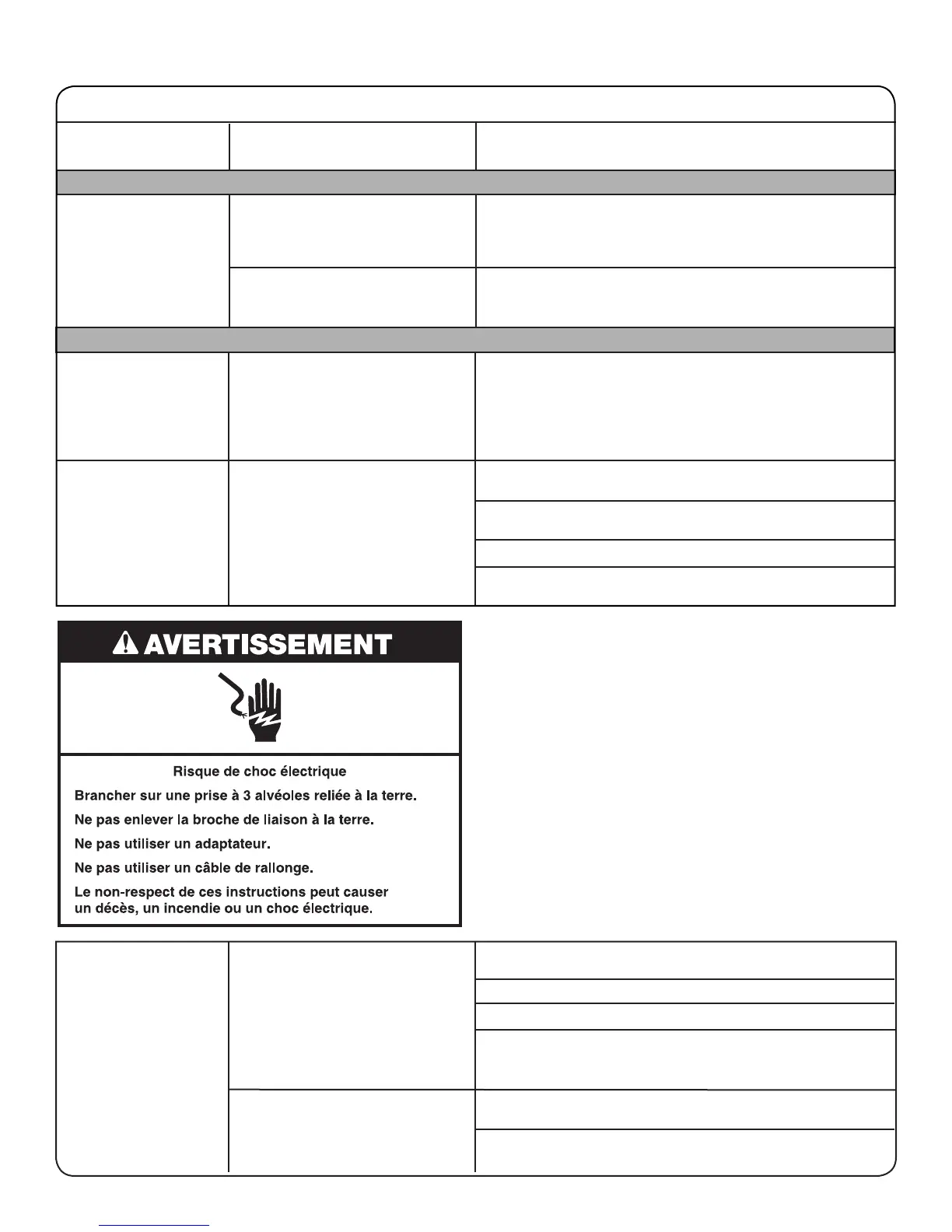 REMARQUE : Si le problème persiste, appeler un électricien.