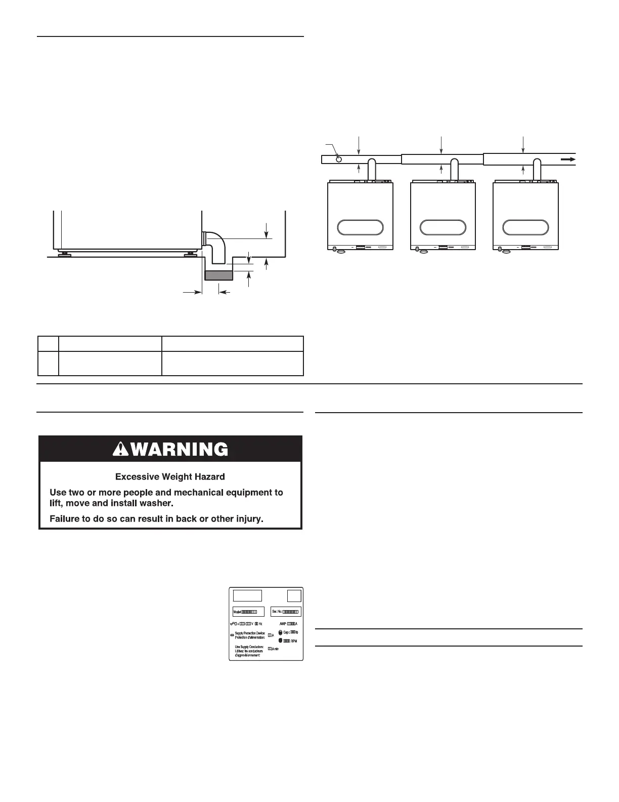 suggested drain diameter for one to three washers is shown