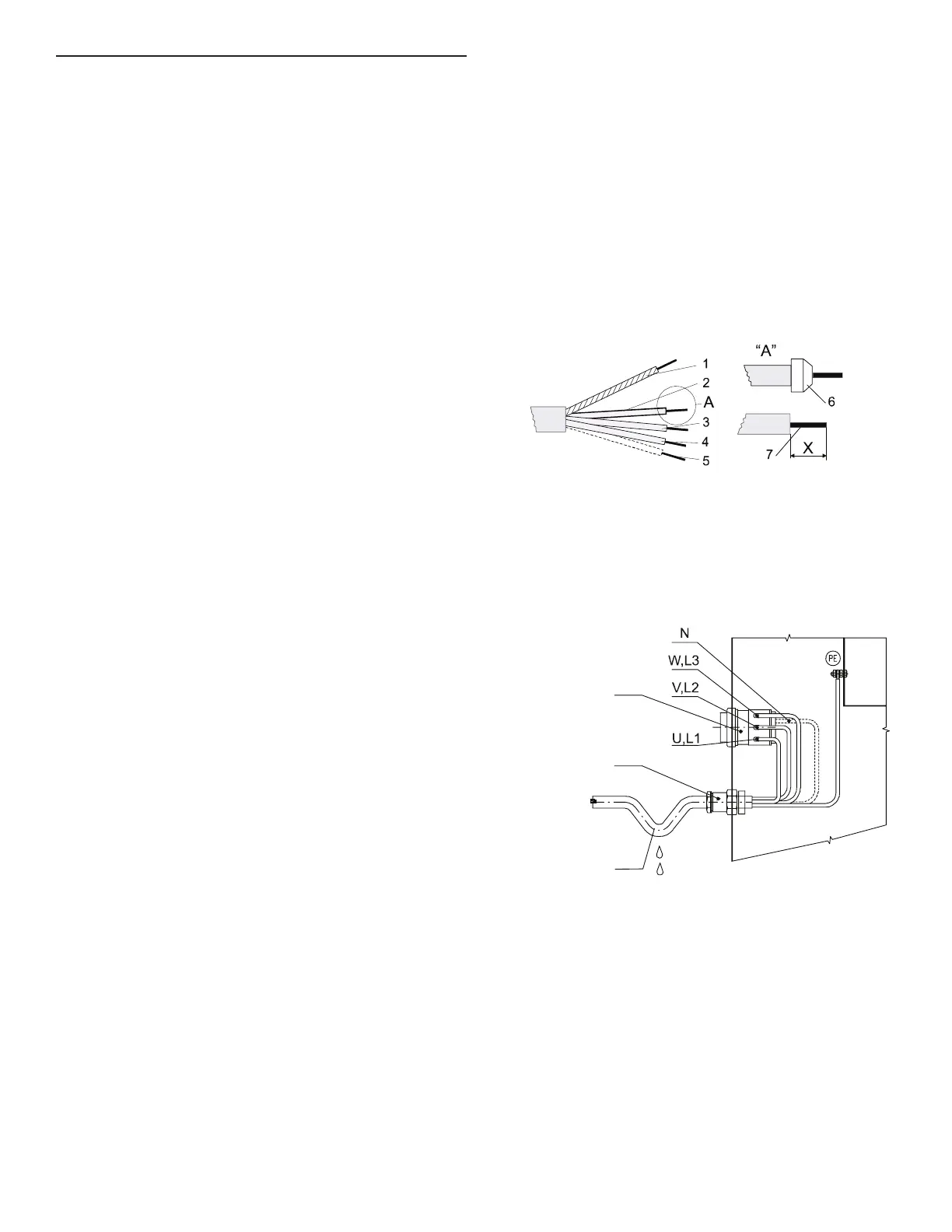 tubes” with an insulated sleeve (6) for L1/U, (L2/V), (L3/W), (N)
