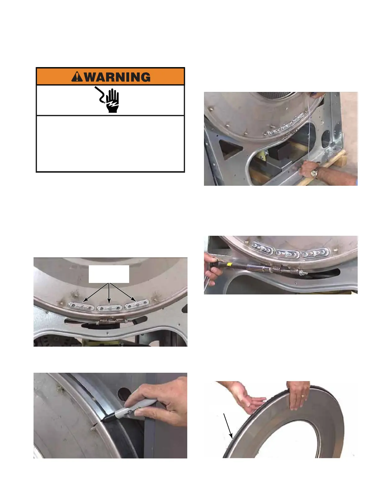 4. Mark tub front cover, clamp and tub to assist