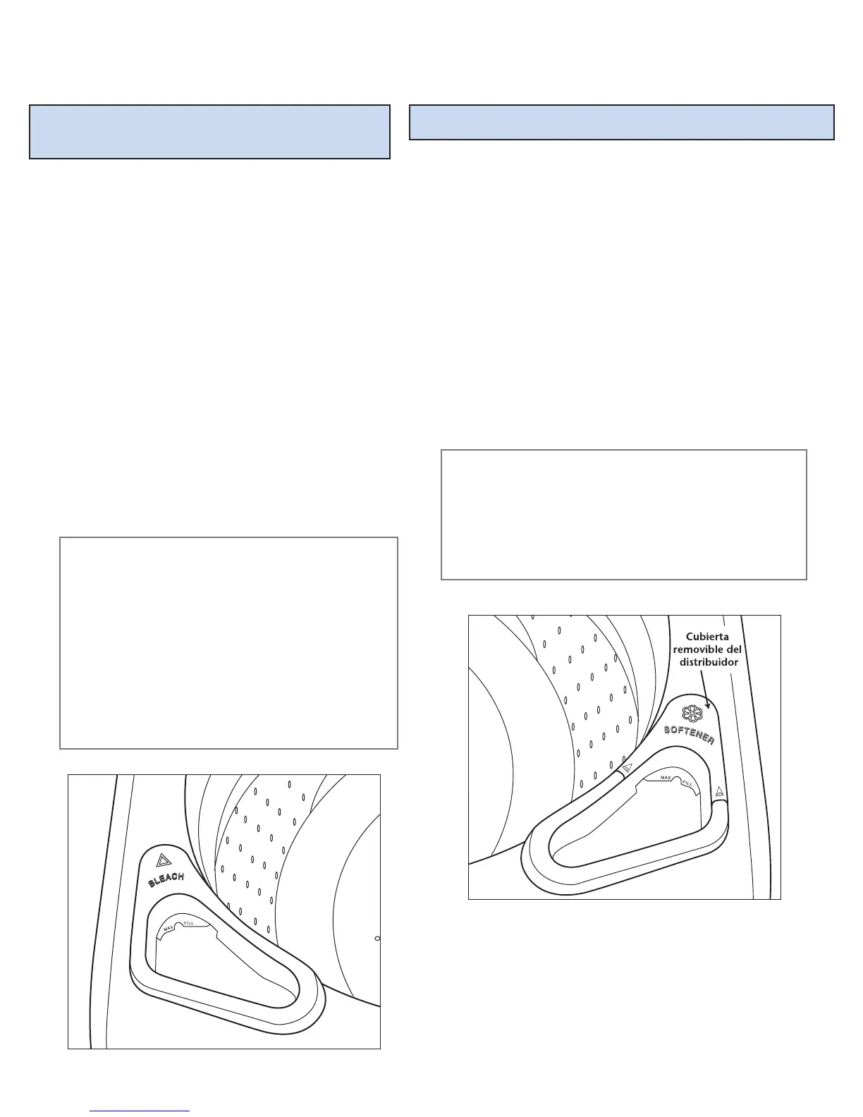 compartimiento del blanqueador. NO llene más arriba