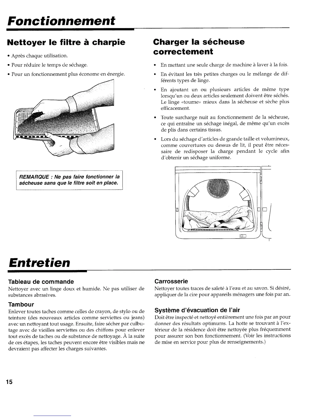 secheuse sans que le filtre soit en place.